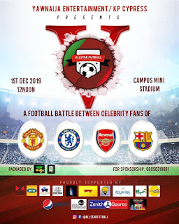 Popular on-air personality Steve Onu also known as Yaw has confirmed top musicians, comedians, and actors for All-Star Futball Season 5 scheduled to hold at the Campos Mini Stadium, Lagos Island on Sunday, December 1st, 2019.