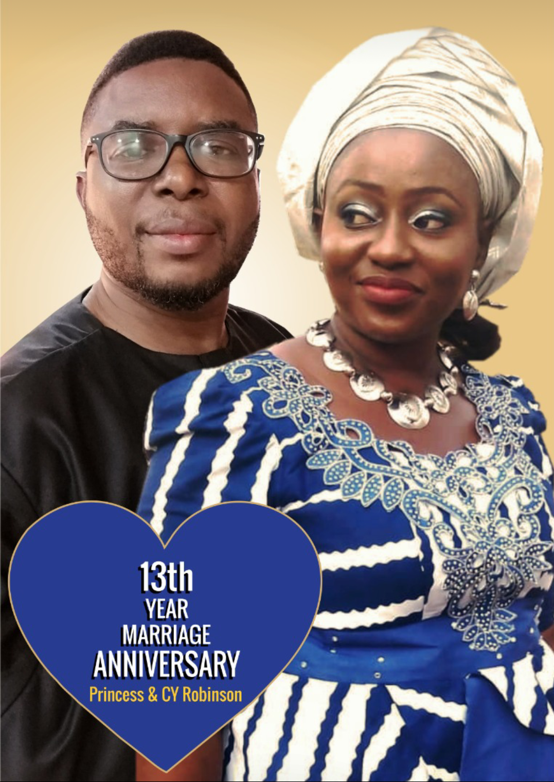 Charming Nigerian couple, Cy Robinson, Princess Robinson Celebrate 13th Year Wedding Anniversary