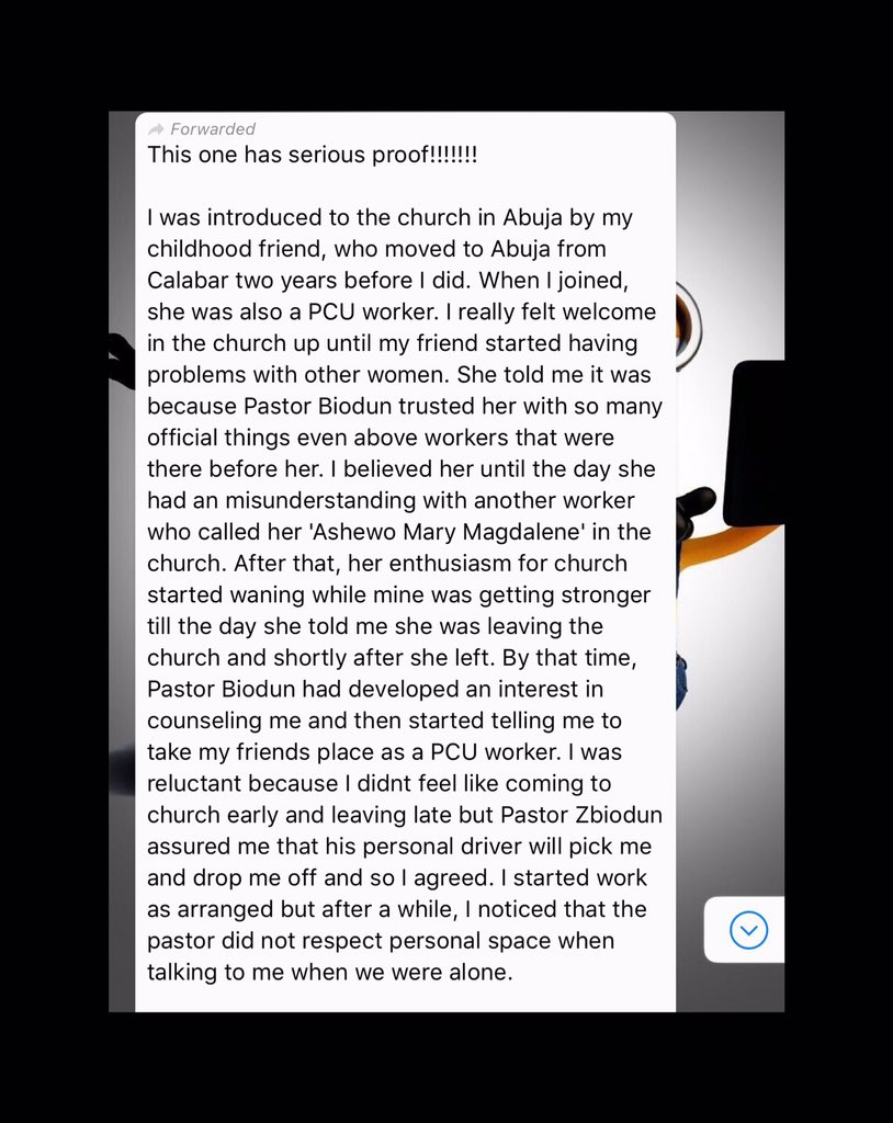 However, the new lady revealed that Biodun, who is the founder and General Overseer of COZA went all out to talk down on his wife just to sleep with her.