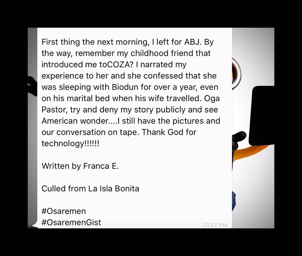Another lady identified as Franca E. has come out with rape allegation against the Senior Pastor of COZA, Biodun Fatoyinbo.