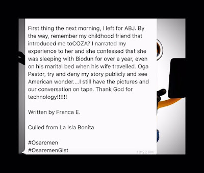 Coza: Franca emerges with another rape accusation against Pastor Biodun