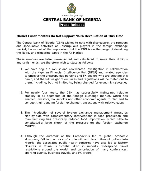 Just in: CBN statement on present scarcity of dollars in Nigeria
