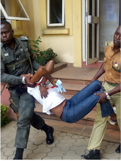 In her tears, she was led out of the courtroom and had to be carried by a mobile policeman and a prison warden out of the court complex to avoid disruption of proceedings in other courtrooms due to the commotion.