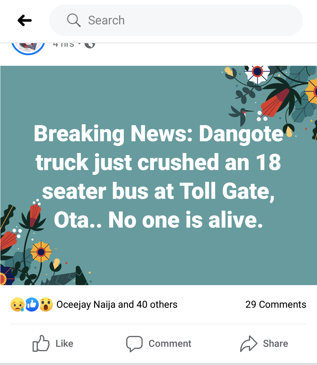 It occur that the brake of the Dangote truck is not 100% active when the driver applied it, which lead to the truck to hit the bus in his front.