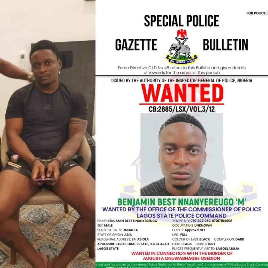 The Lagos State Police Public Relations Officer, Benjamin Hundeyin, has confirmed the arrest of one Benjamin Nnanyereugo for allegedly killing his girlfriend, Augusta Osedion, by the Sierra Leonean police force.