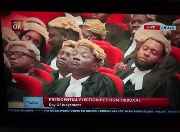 Lol………here is a viral photo of lawyers sleeping at the ongoing Presidential Election Petition Tribunal in Abuja in which Atiku Abubakar’s case against President Buhari and the Independent National Electoral Commission (INEC) will be decided.