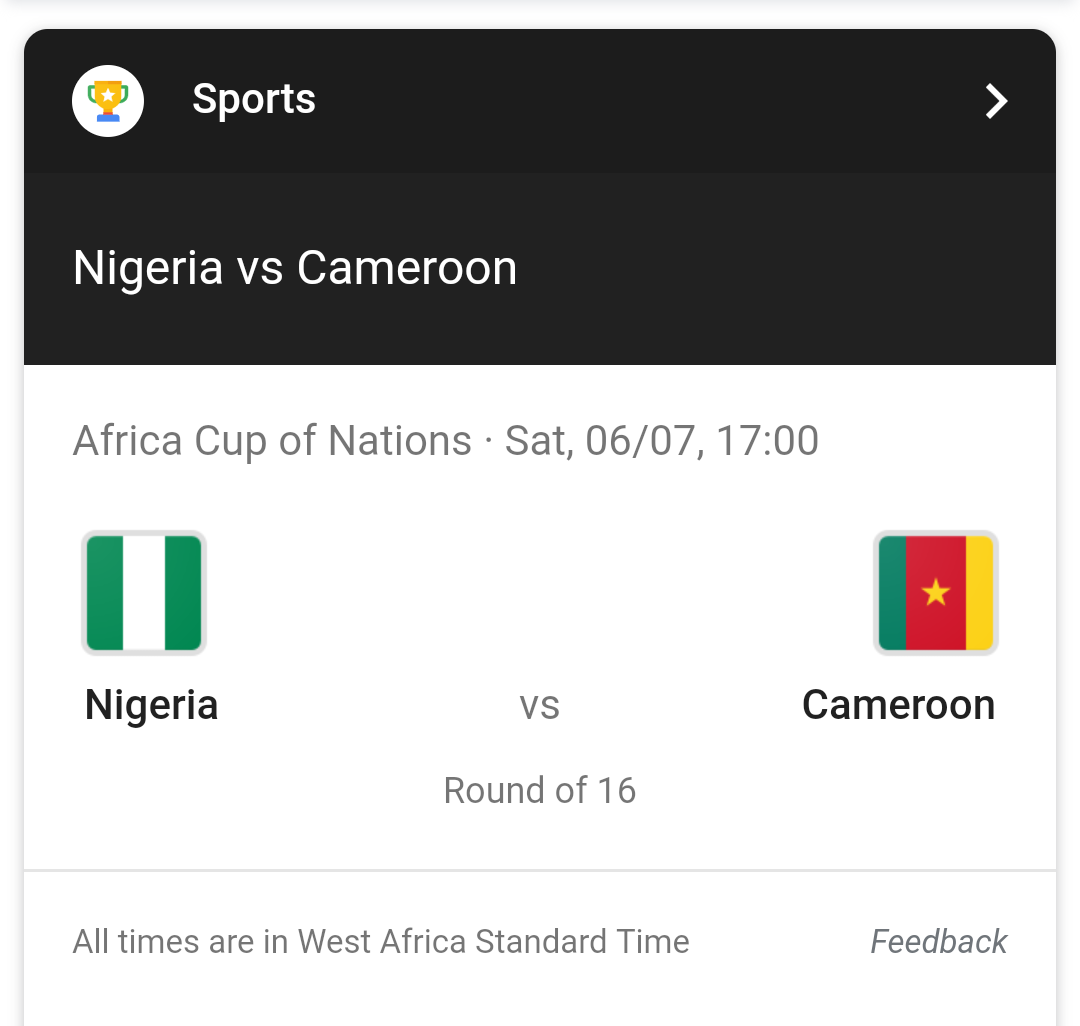 Sports – Defending champions Cameroon to face Nigeria in AFCON round of 16