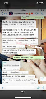 Immediately after this, she quickly called her pastor, who confirmed to her that her boyfriend, had indeed used her for rituals.